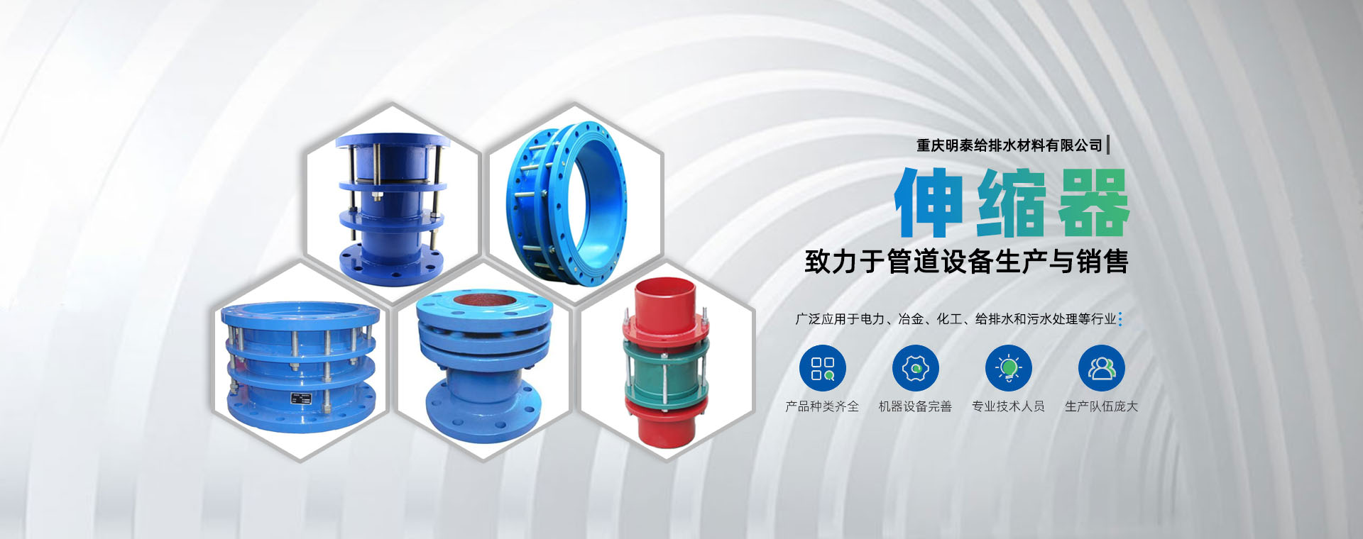 重慶明泰給排水材料有限公司是一家有著多年的銷售管理經驗、以及完善的售后、服務性企業公司。從80年代末期生產臺“伸縮接頭”和90年代中期研制生產的臺“蝶閥”開始,歷經二十多年的發展,成為一家給排水企業。生產各種管道配件、給排水材料的專業企業。主要生產的產品有橡膠接頭系列,管道配件、伸縮器系列,鋼制傳力接頭系列,不銹鋼波紋補償器,防水套管系列。電廠煙、風、煤管道補償器系列,閥門系列,環保凈水劑系列,產品設計獨特,結構新穎合理,性能可靠,給工程施工、維修帶來方便和效益.....